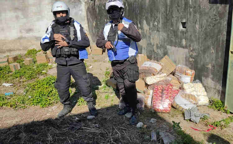 Criminosos abandonam parte da mercadoria em um terreno baldio.