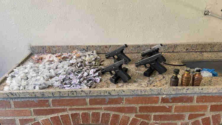 Com os presos os policiais apreenderam quatro pistolas, três granadas e farto material entorpecente a ser contabilizado. Outros dois suspeitos fugiram na ação. O caso foi registrado na 76ª DP (Centro).